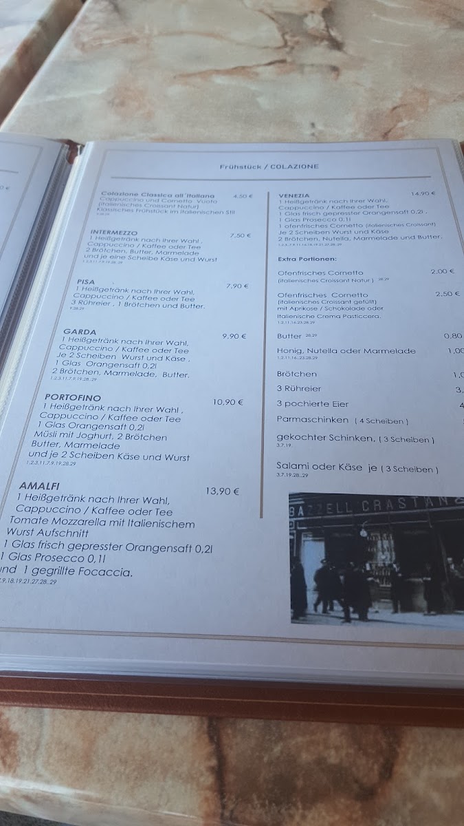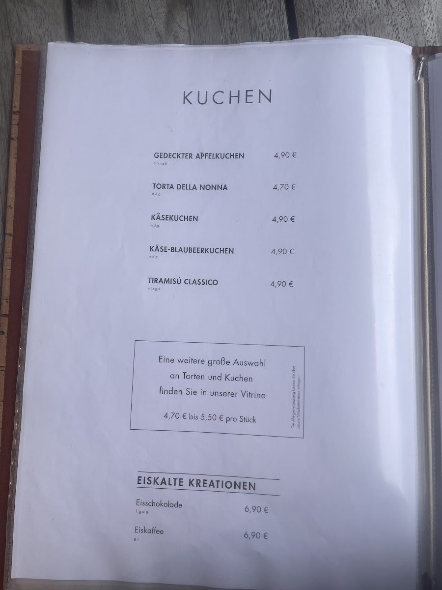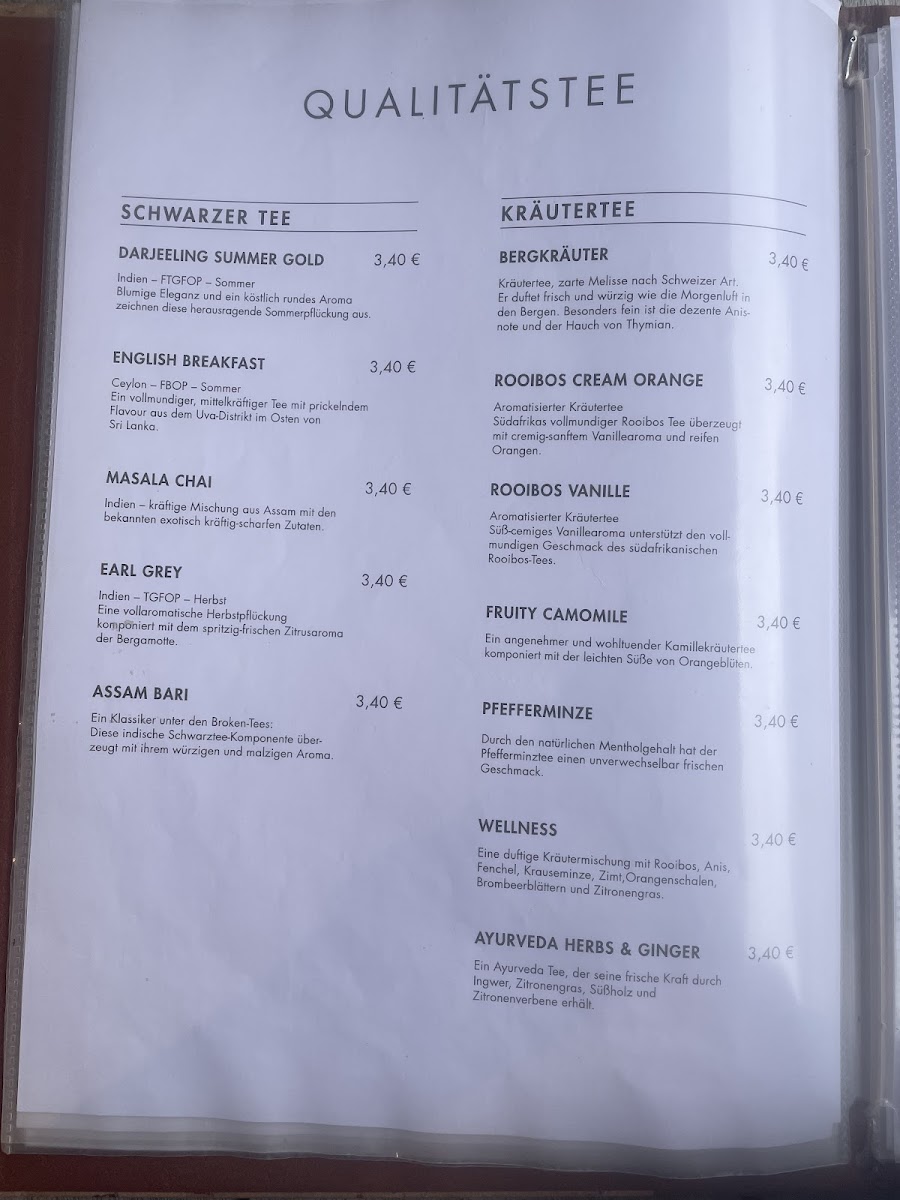 Complementing the coffee offerings, the menu includes a variety of sweet treats such as torte with mango, tiramisu, Apfelstrudel, and apple pie. These desserts provide options for those seeking a light indulgence or accompaniment to their drink.